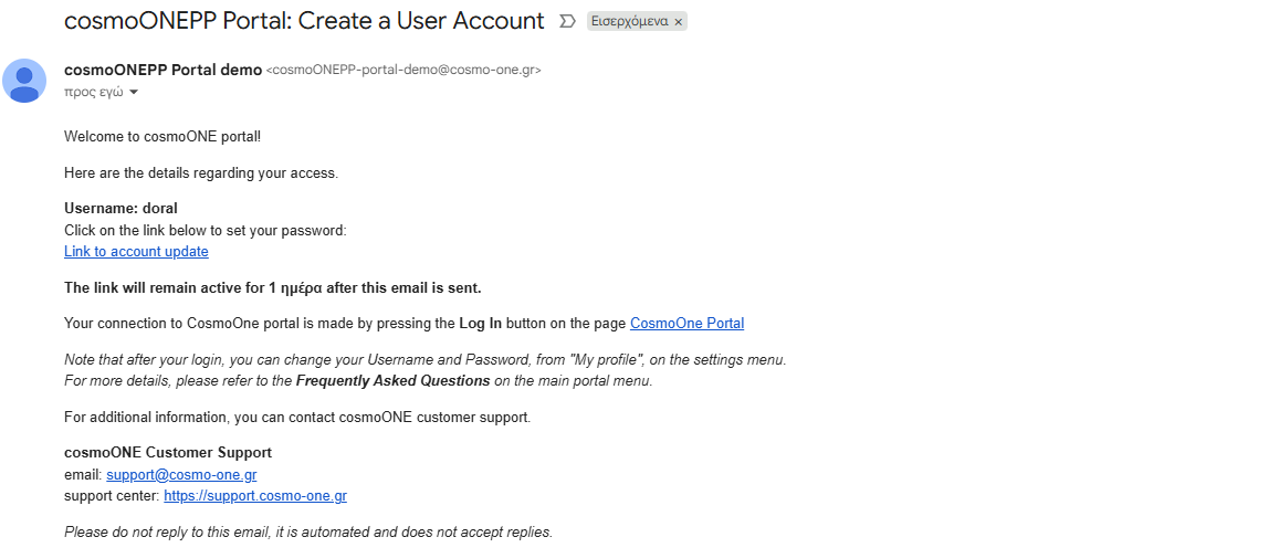Αμέσως μετά, θα λάβετε αυτόματα email με σύνδεσμο για να δημιουργήσετε νέο κωδικό πρόσβασης.