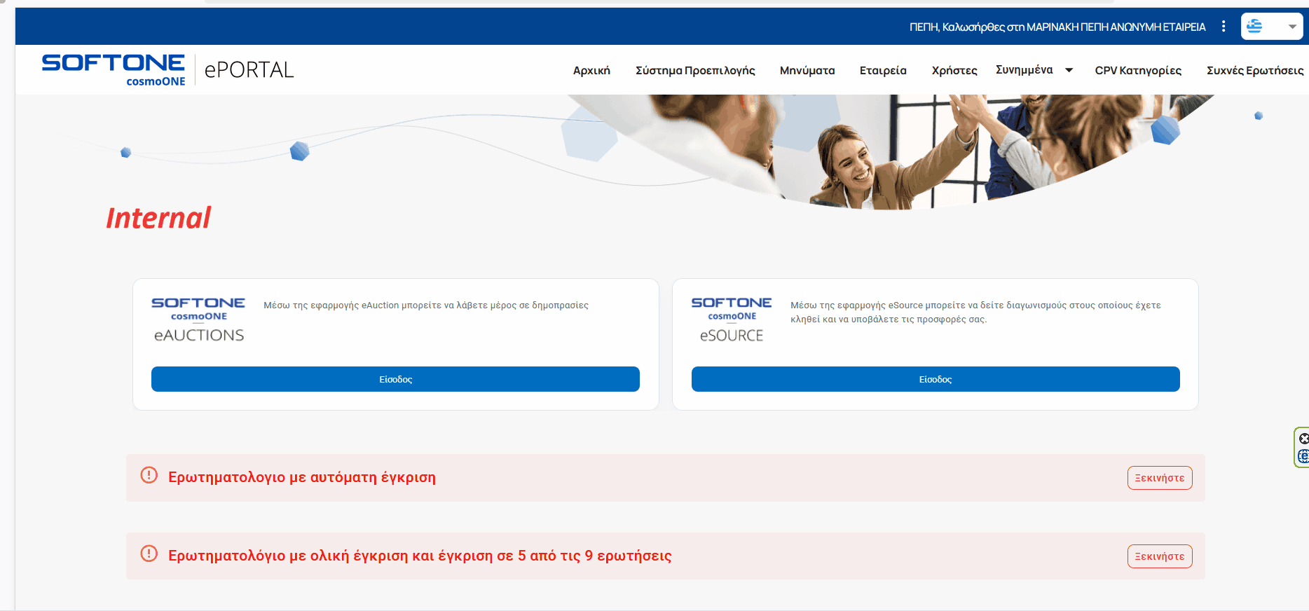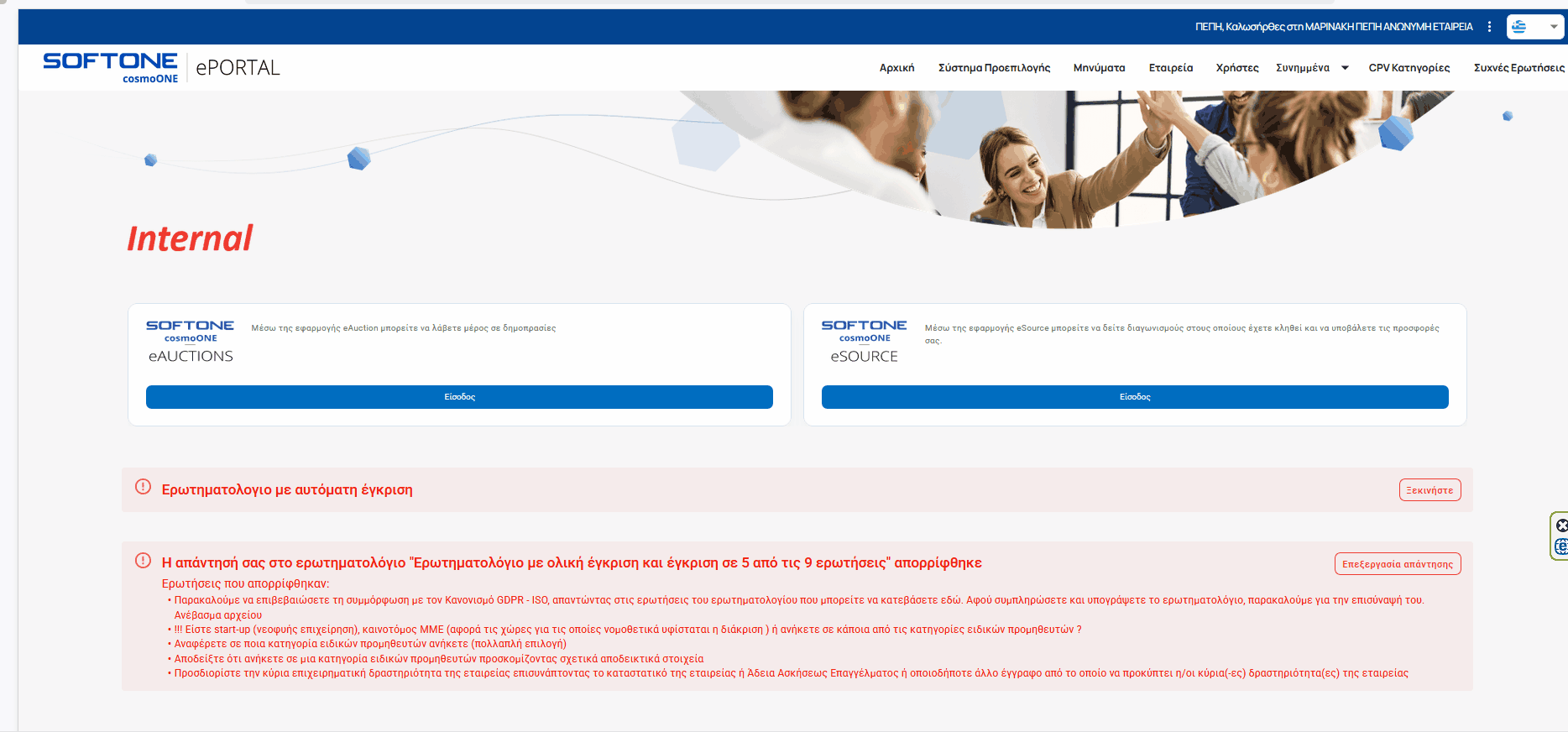 - Σε καμία περίπτωση δεν έχετε τη δυνατότητα να επεξεργαστείτε ή να αποστείλετε εκ νέου ερωτηματολόγιο που έχει ήδη υποβληθεί στον Αναθέτοντα Φορέα. Η επεξεργασία και εκ νέου υποβολή είναι εφικτές μόνο εφόσον το ερωτηματολόγιο απορριφθεί και σας επιστραφεί από τον φορέα.