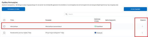 4. Στη στήλη «Ενέργειες», πατώντας στις τρεις κάθετες τελείες, μπορείτε να δείτε επιπλέον πληροφορίες ή επισυναπτόμενα αρχεία σχετικά με την κατηγορία που σας ενδιαφέρει, όπως φαίνεται στην παρακάτω εικόνα.