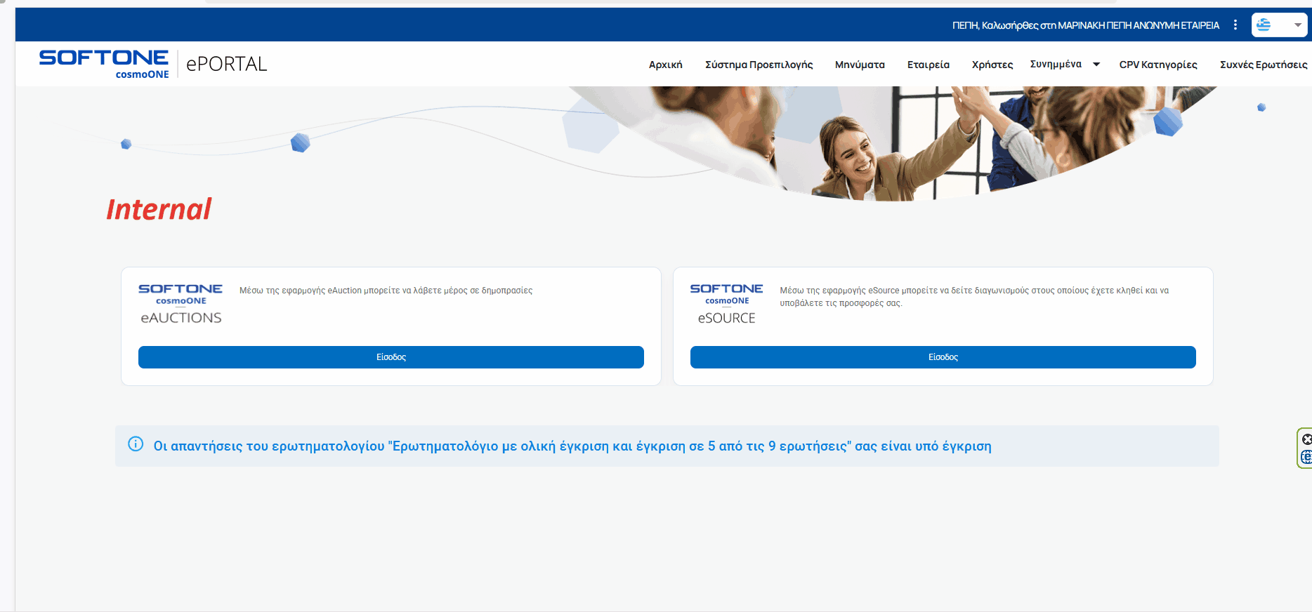 - Η έγκριση ή απόρριψη της αίτησής σας για ένταξη στην ομάδα κατηγορίας από τον φορέα δεν εξαρτάται από την αξιολόγηση του ερωτηματολογίου. Είναι πιθανό το ερωτηματολόγιο που έχετε συμπληρώσει να παραμείνει εγκεκριμένο, αλλά η αίτησή σας για τη συγκεκριμένη κατηγορία να απορριφθεί. Για τυχόν αλλαγές ή διευκρινίσεις, παρακαλούμε επικοινωνήστε με τον Αναθέτοντα Φορέα.