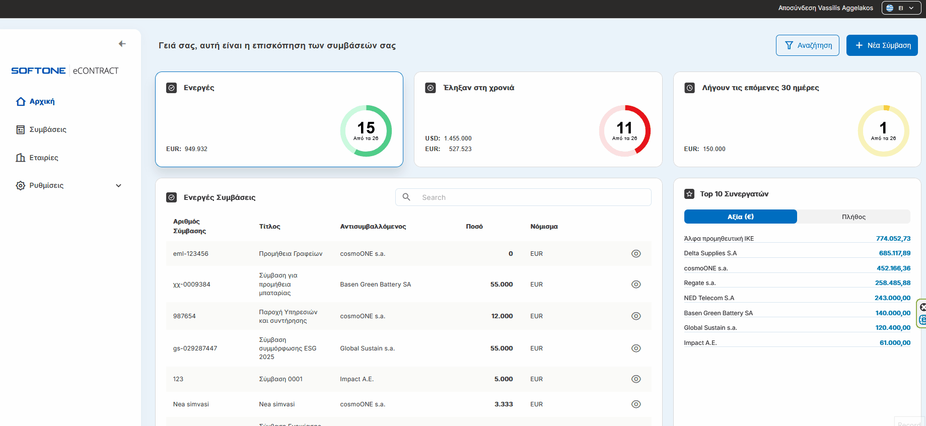 - Από το μενού «Εταιρίες», πατώντας το κουμπί + Νέα Σύμβαση.