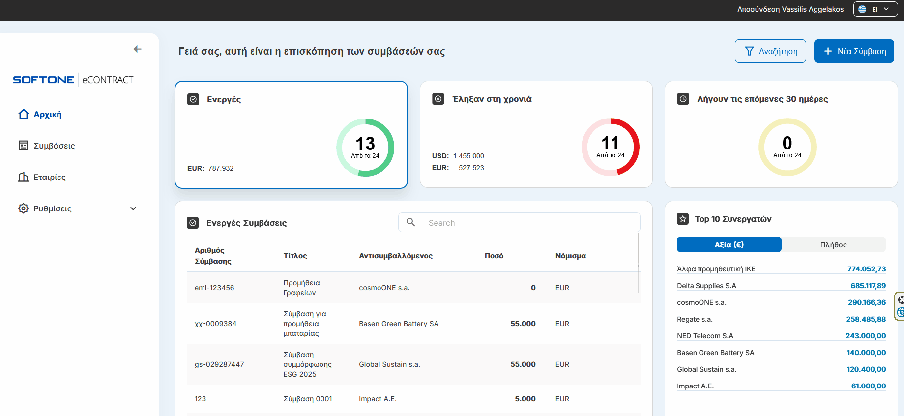 📺 Δείτε το σχετικό βίντεο/gif που παρουσιάζει τον τρόπο προβολής για όλες τις συμβάσεις, τα στοιχεία και τις επαφές μιας εταιρίας.