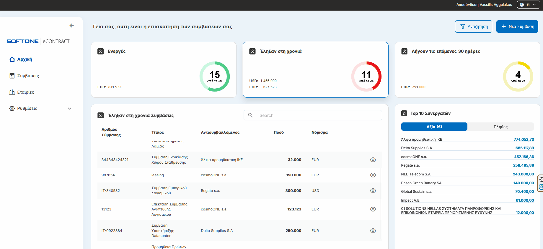- Διαγραφή: Αν μια σύμβαση δεν χρειάζεται πλέον να παραμένει στο σύστημα, μπορείτε να την αφαιρέσετε οριστικά μέσω της επιλογής διαγραφής.