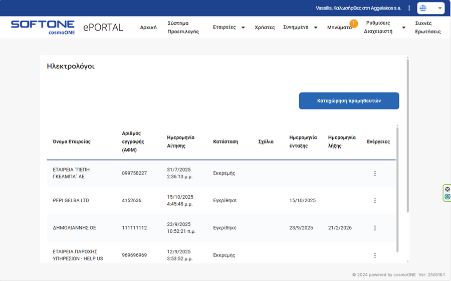 👉 Τι μπορώ να κάνω μέσα από την επιλογή «Εγγεγραμμένοι Προμηθευτές»;